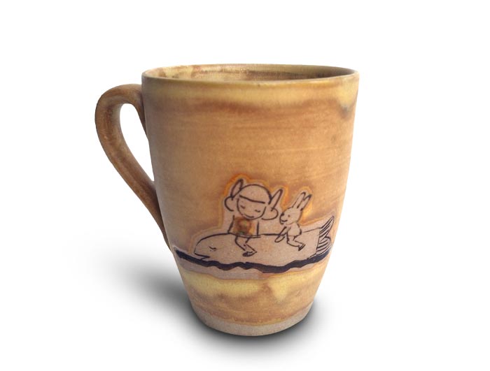 แก้ว มีหูจับ G269 วาดลายเด็กหญิงกับกระต่ายเล่นขี่ปลา
